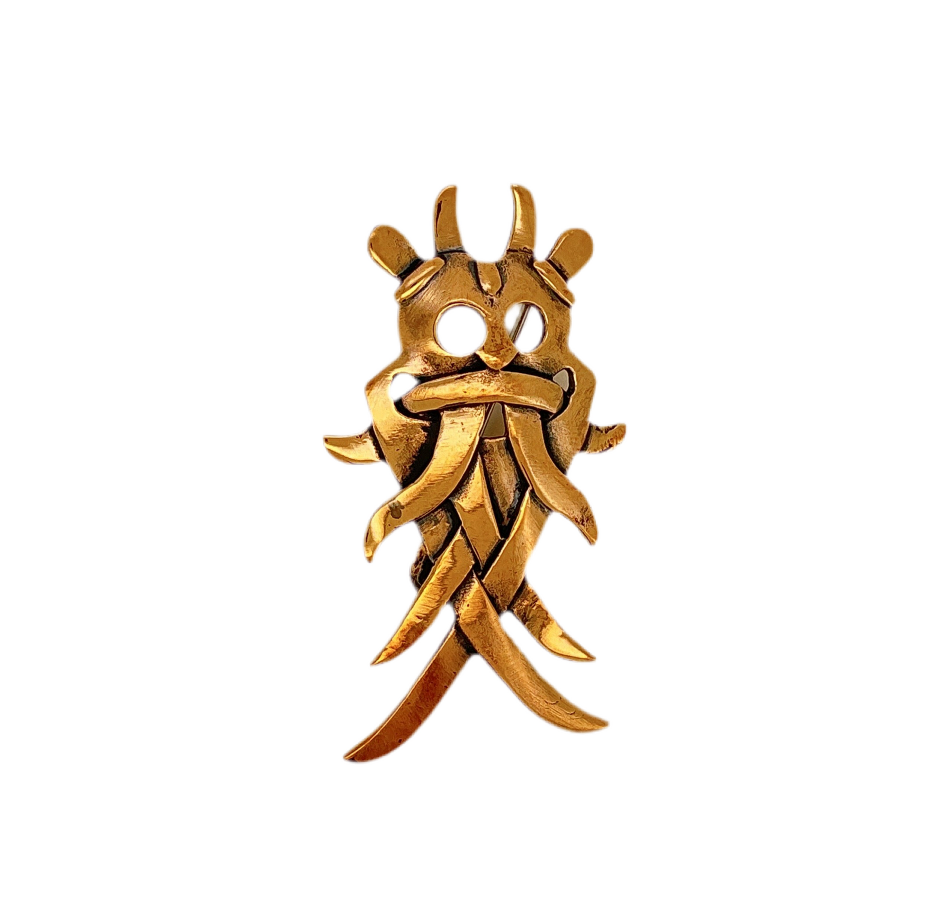 Der blev fundet 5 maskestensfragmenter i Midtjylland/DK, denne ved Århus, og betydningen er omstridt: Det kan være Odin, Thor eller Kristus. - Iflg. mytologien var Odins maske så skræmmende, at fjenden ofte veg tilbage uden nogen form for kamp, hvilket sparede "Den Almægtiges" energi og tid til mere fornøjelige og profitbringende foretagender.
