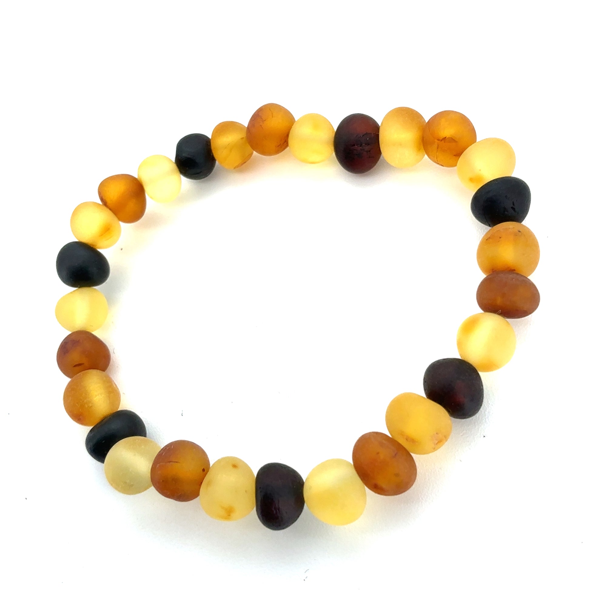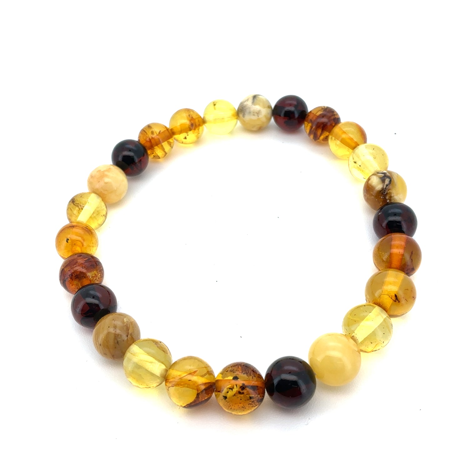 Elegant armbånd lavet af ægte ravperler, der fås i både blank og glat overflade.