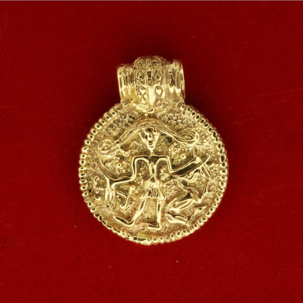 Brakteat Tyr og Fenrisulven i 14 karat guld