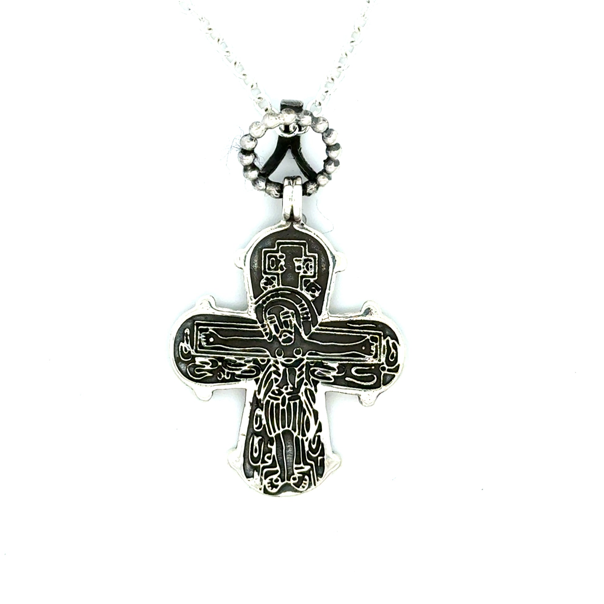 Giv dit smykkesæt et stykke dansk historie med vores Dagmarkors-vedhæng i to størrelser: Lille (44 x 26 mm) og Stor (51 x 34 mm). Korset er inspireret af det berømte Dagmarkors fra Sankt Bendts Kirke i Ringsted, dateret til 1000-1200-tallet og præget af byzantinsk smykkekunst. Originalen er udstillet på Nationalmuseet i København.