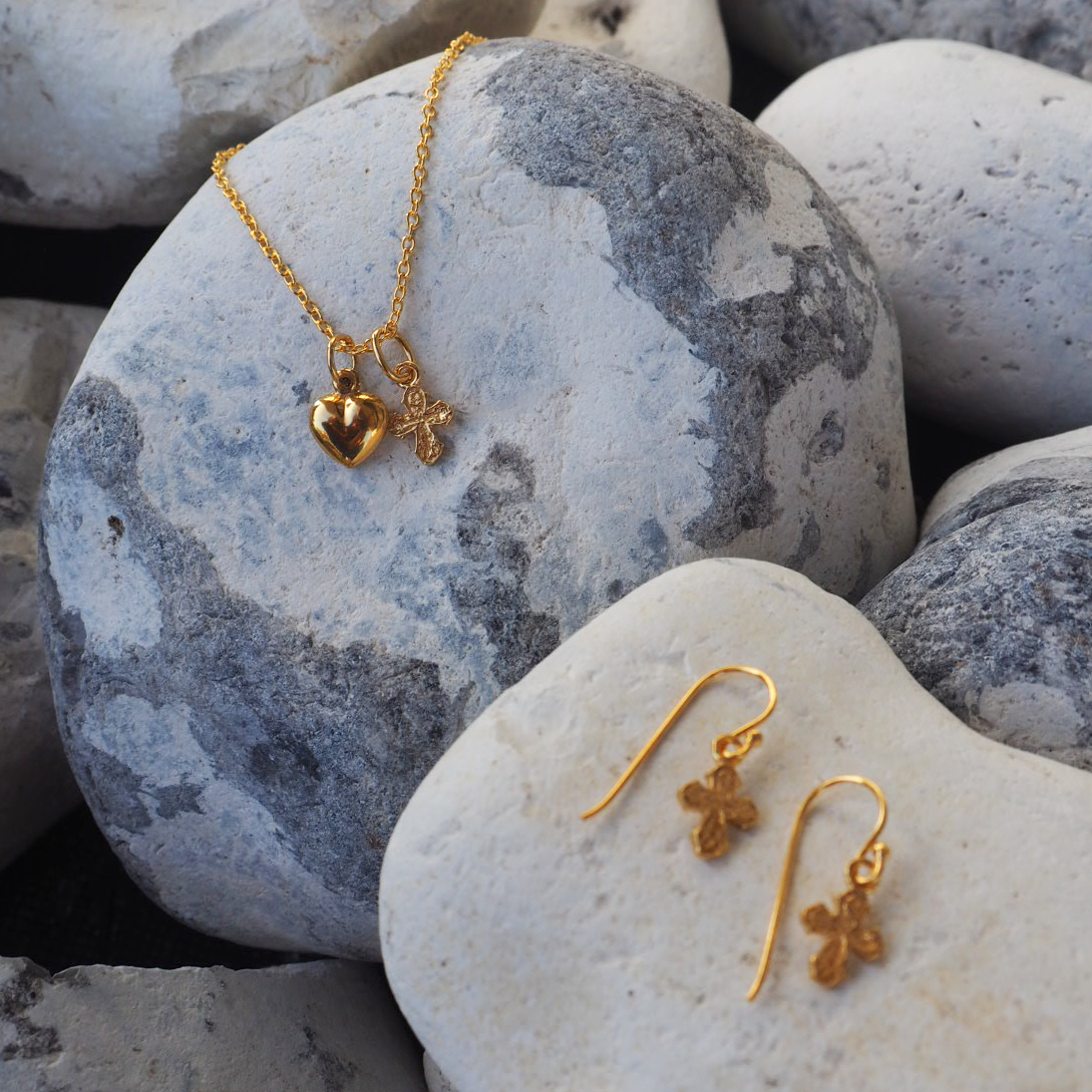 Lille Dagmarkors i forgyldt sølv som øreringe
