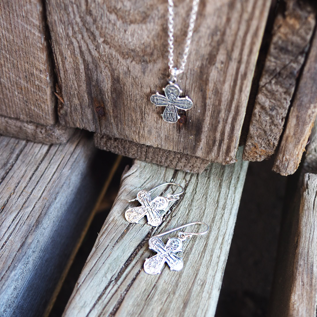 Dagmarkors vedhæng og øreringe sæt i sølv