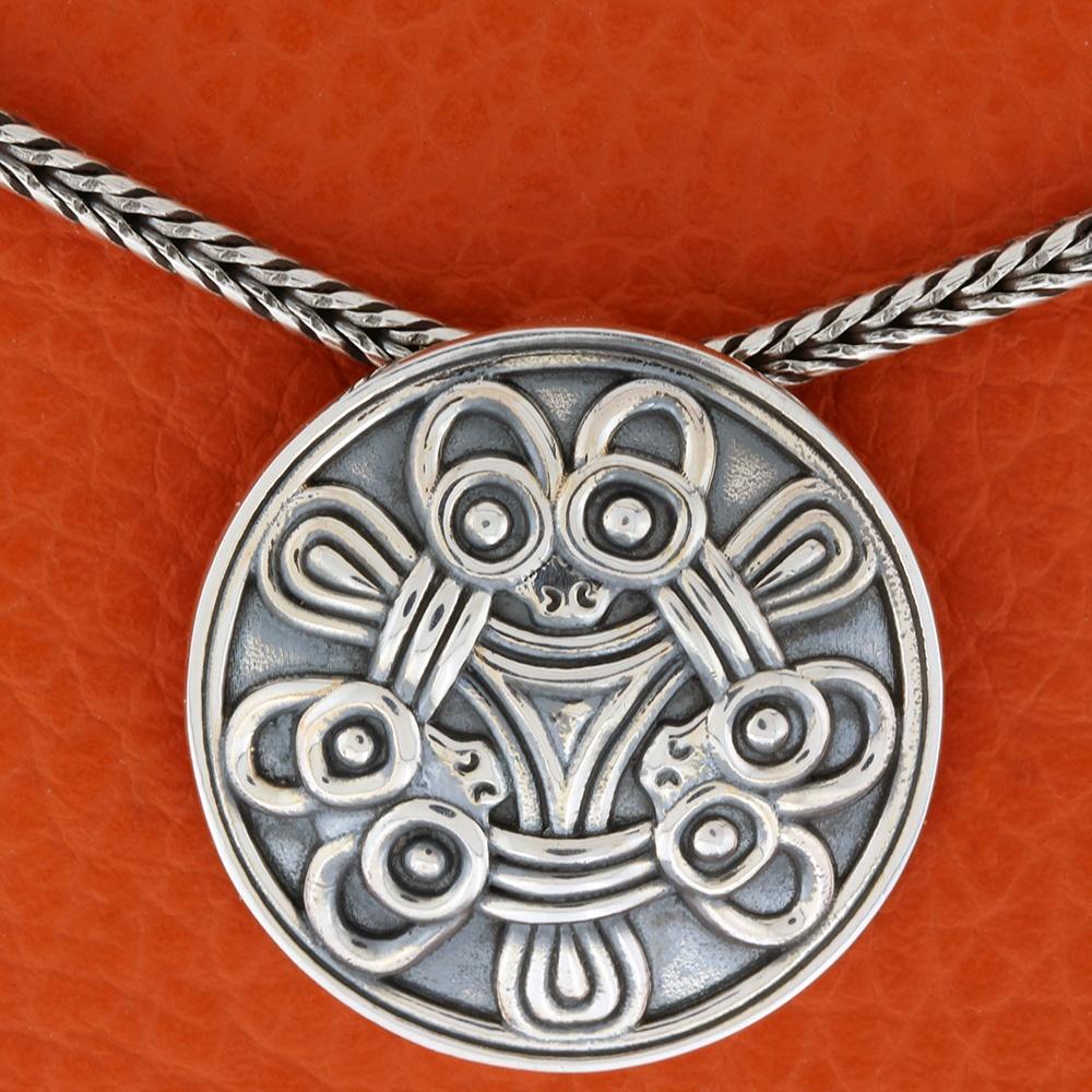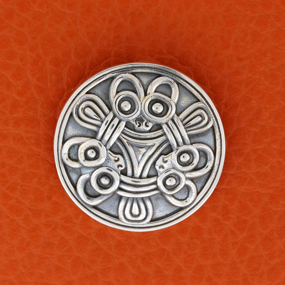 Denne broche viser tre dyrehoveder, hvis snuder er vendt med en trekant i midten med indsvungne sider. Trekanten har igennem år hundrede symboliseret treenigheden.