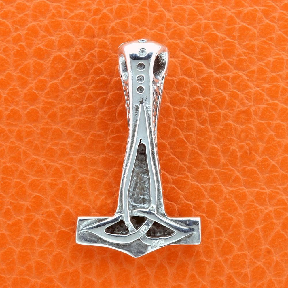 Oplev denne unikke Thors Hammer i sterling sølv, hvor begge sider er smukt mønsteret, så du får to designs i ét smykke.