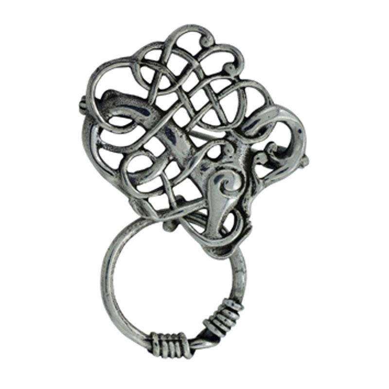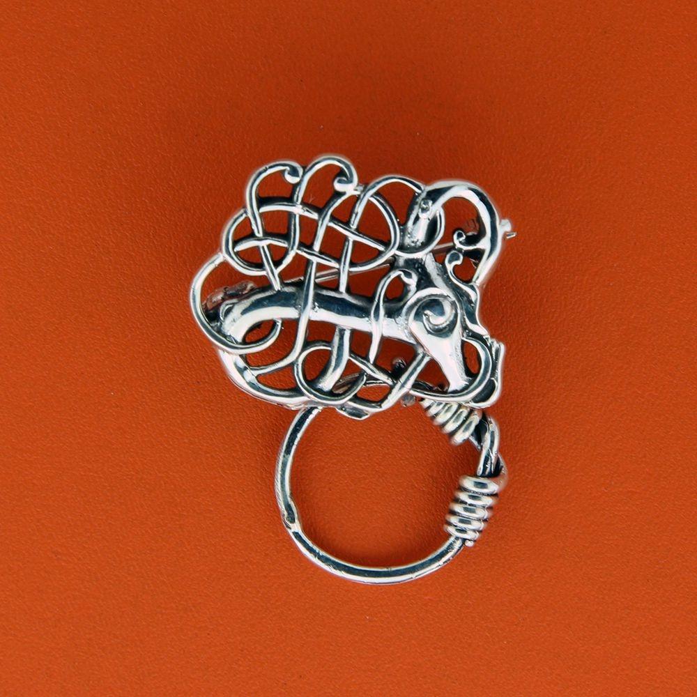 Viser et dyr omgivet af to slanger og symboliserer antageligt kampen mellem det gode og det onde.