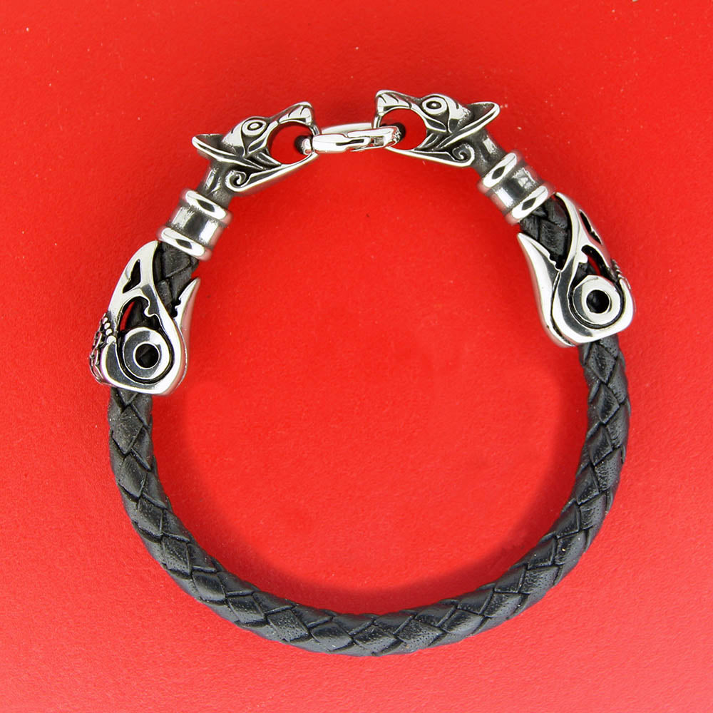 Vi fik en henvendelse på, om vi kunne sammensætte dette armbånd til en kunde. Det lykkedes og vi synes resultatet er fantastisk - derfor har vi oprettet armbåndet i vores webshop. Det er vores Fenris armbånd, hvor vi så har sat to ekstra Ravne hoveder på. Så Hugin og Munin er med og omkranser Fenris ulven der bider i ringen.