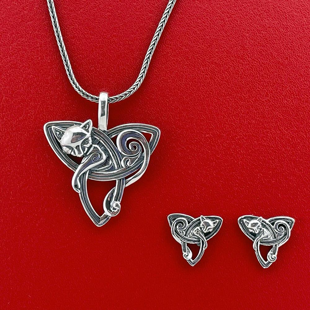 Frejas katte i et samlet smykkesæt - sølv