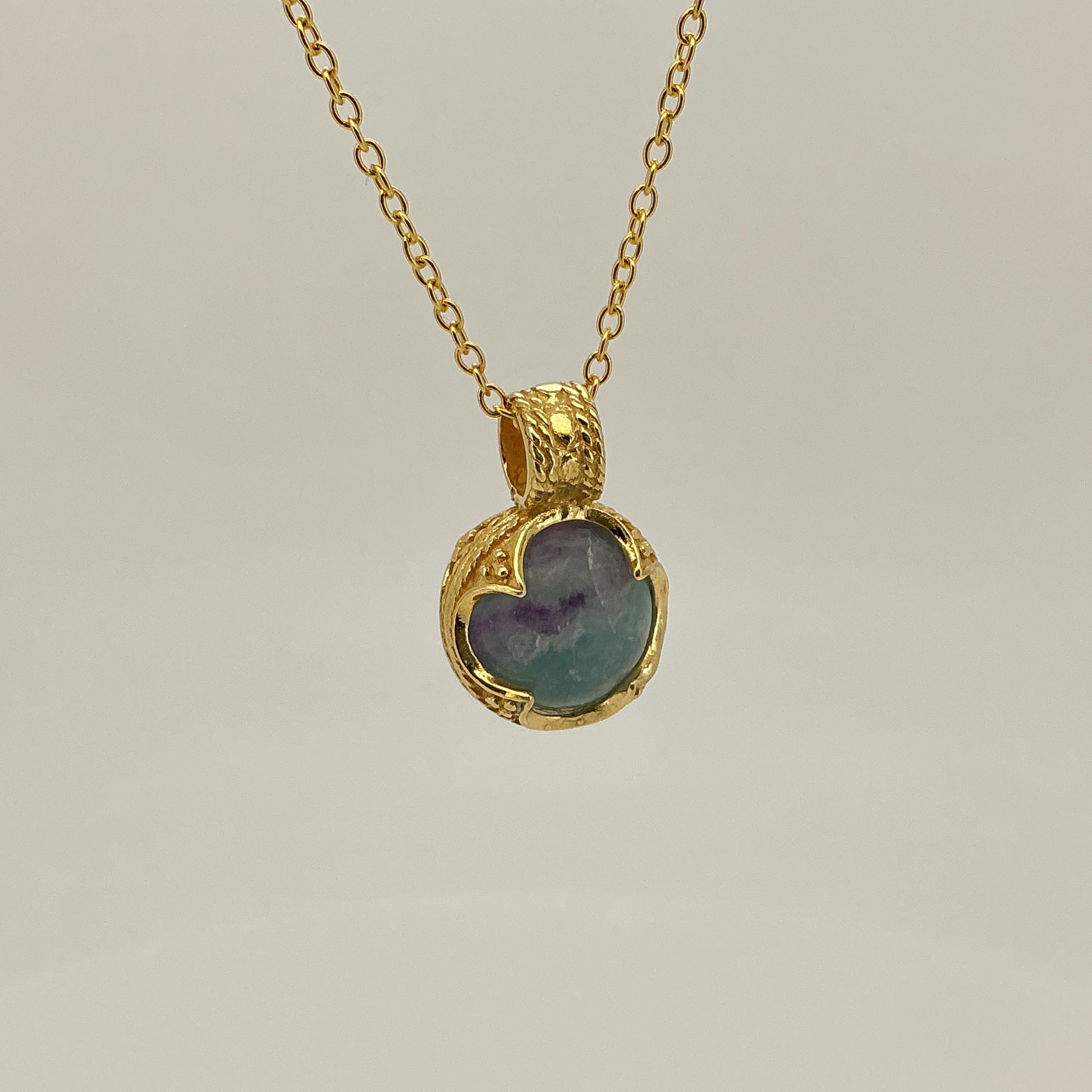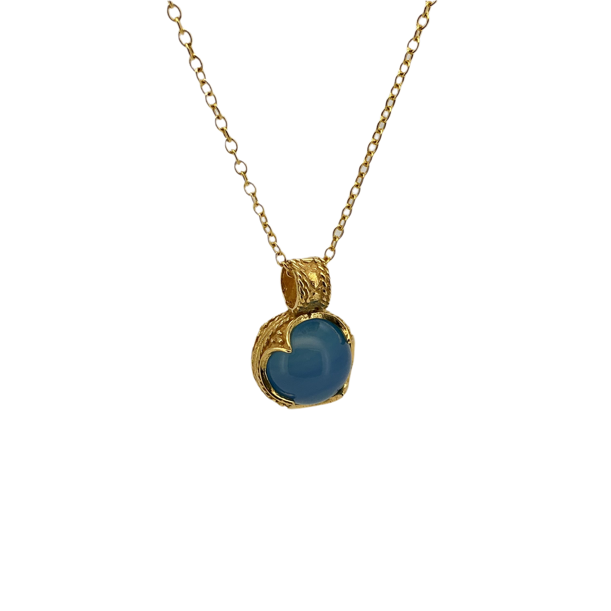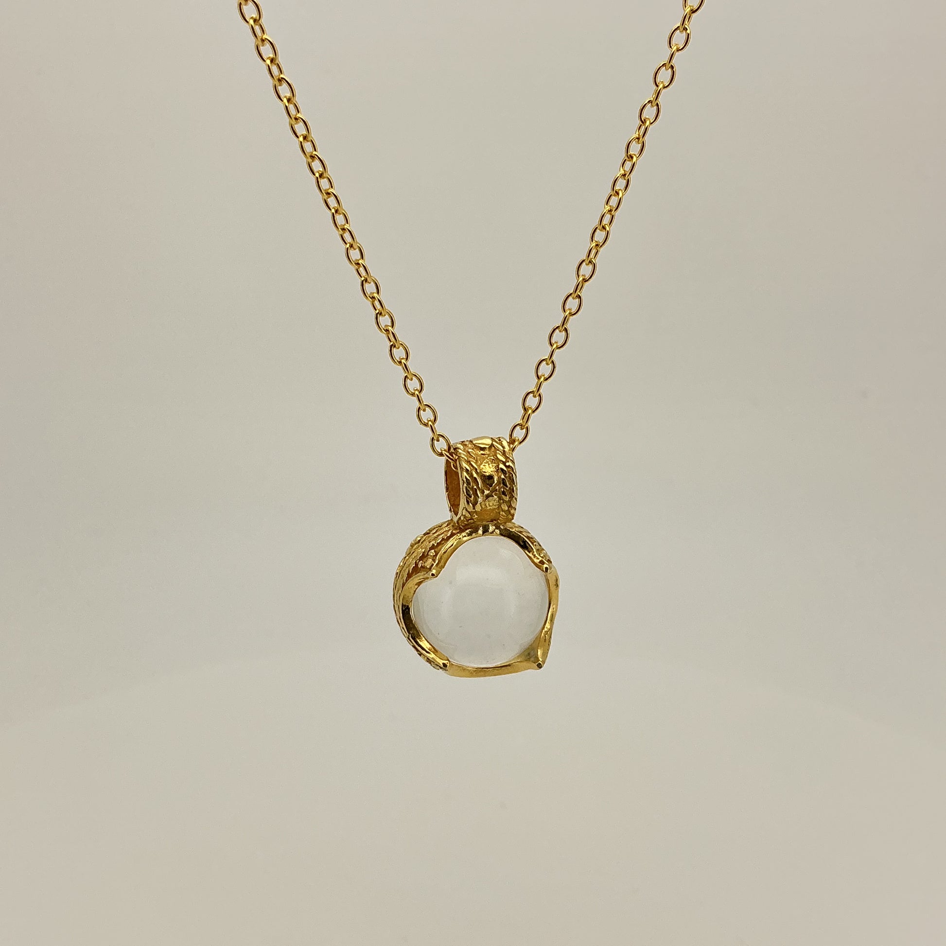 Dette vedhæng stammer fra en gotlandsk sølvskat fra vikingetiden, ca. 800 - 1.100 e. Kr. Udover at være båret som værdifulde smykker, har krystallerne sandsynligvis været brugt som forstørrelsesglas.
