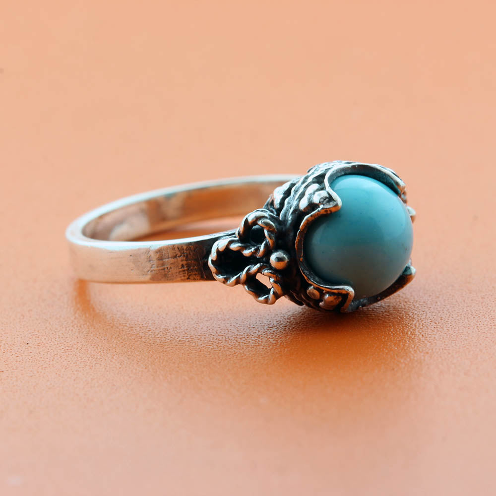 Inspireret af en gotlandsk sølvskat fra vikingetiden (ca. 800–1100 e.Kr.) har denne ring en firdelt indfatning, der symboliserer livets cyklus, mens de tre små kugler repræsenterer treenigheden.