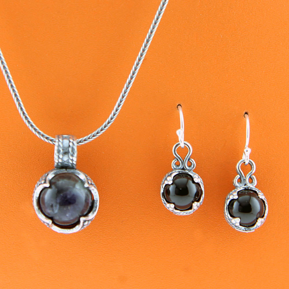 Dette smykkesæt har vi fået sat en sort agatsten i.