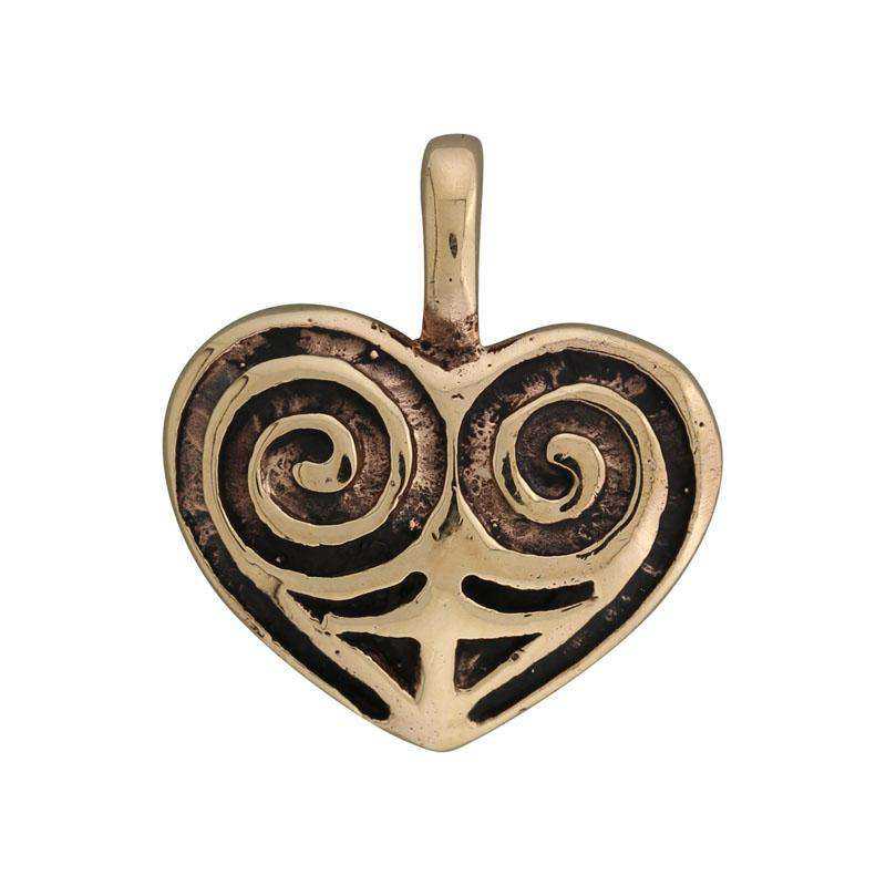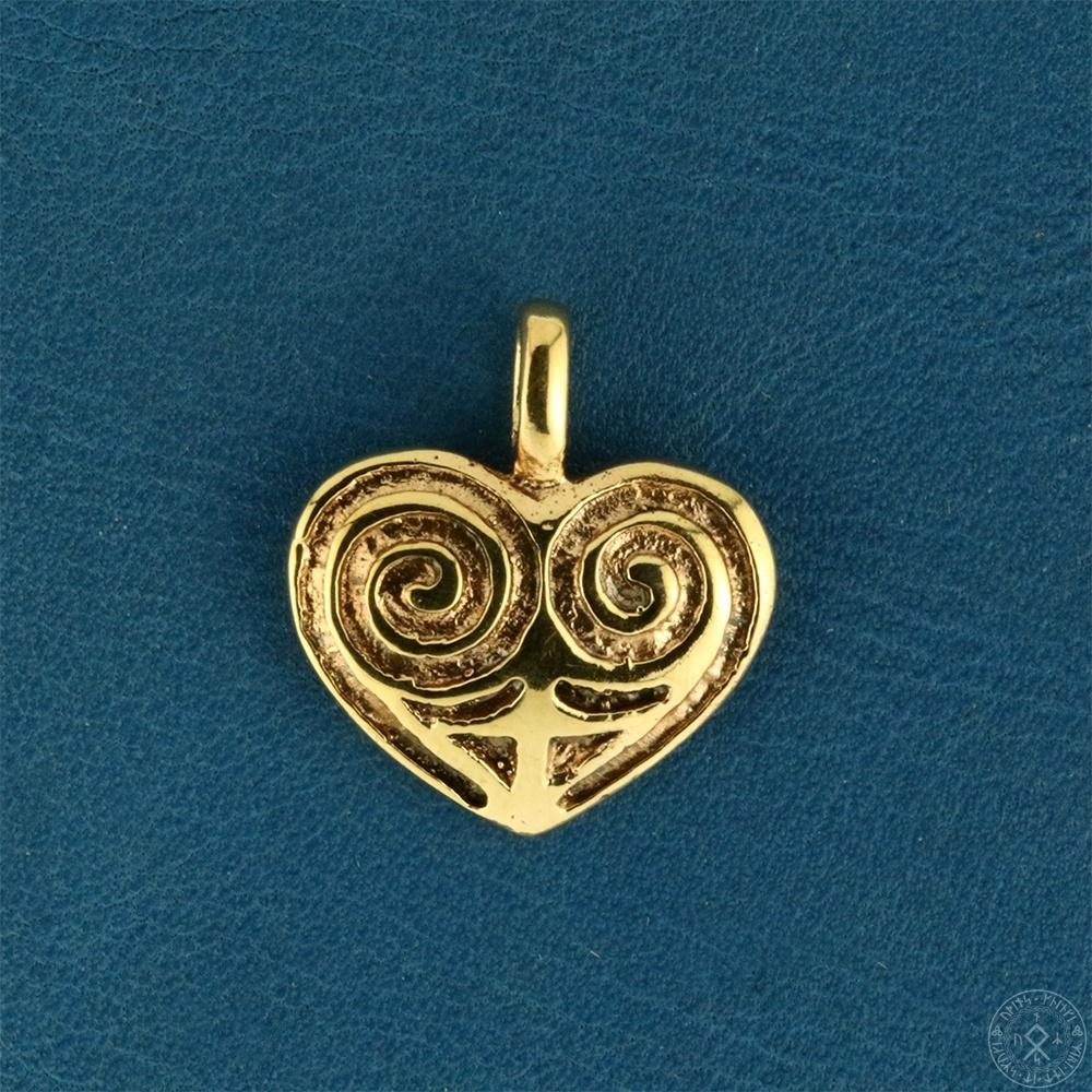 Amulet for kærlighed (hjertet) og frugtbarhed, livskraft og fornyelse (spiralerne).