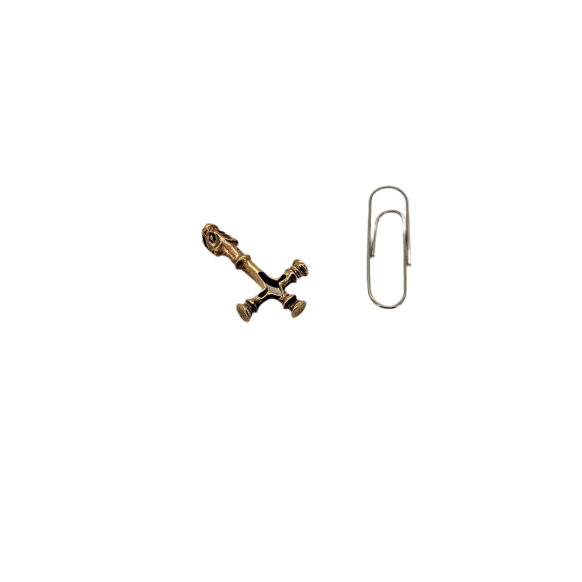 Vedhænget blev båret som amulet for klogskab og livskraft, og kombinerer nordisk mytologi og kristen symbolik på en unik måde, der afspejler vikingerne kultur og tro. Udført i solid bronze, kan smykket patineres for en dybere, rødlig tone eller pudses op for en lysere, gylden finish, hvilket giver det både holdbarhed og autentisk udtryk.