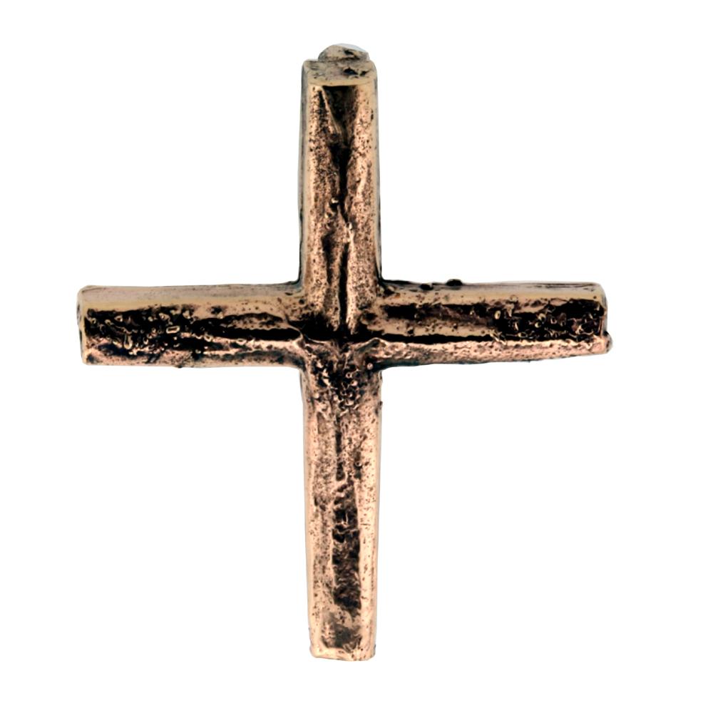 Hængekors fra Nordhøjen, original i forgyldt kobber. Fundet uden øsken til kæden i 1863. Det antages, at Gorm den Gamle blev gravlagt efter gammeldags manér i Nordhøjen ca. år 959 af sin søn Harald Blåtand. Kun seks år senere overgik Harald til den kristne tro og genbegravede sin far af samme årsag. Korset kan være lagt i graven, efter det blev tømt, som tegn på overgangen til den nye tro.