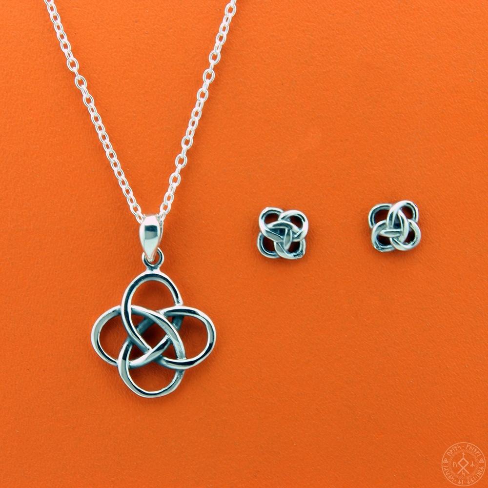 Her får du et samlet smykkesæt - det består af vedhæng på en sølvkæde plus et sæt ørestik.