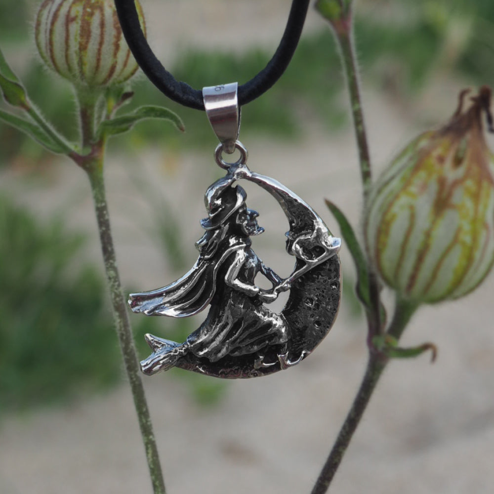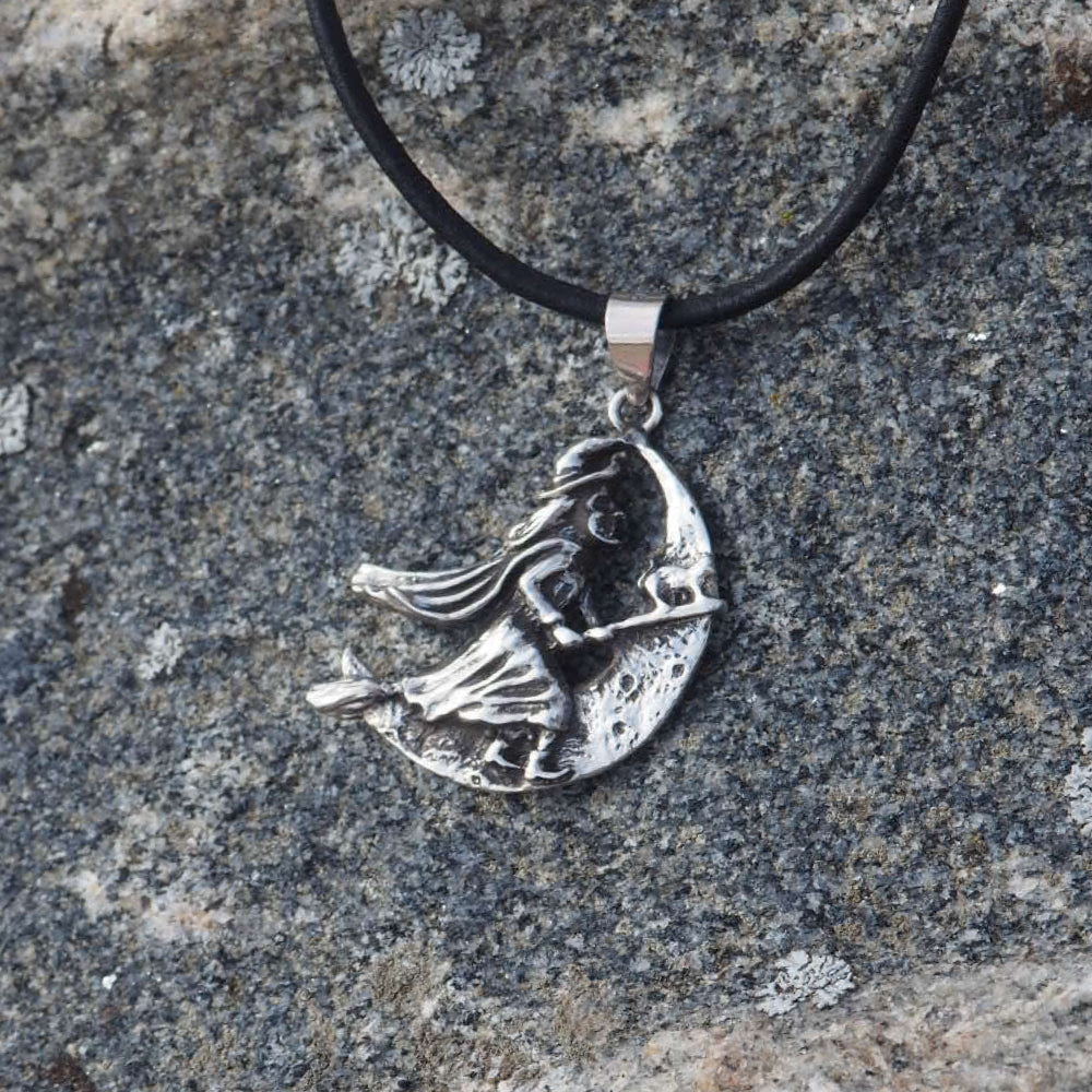 Denne traditionelle heks og hendes sorte kat flyver over månens