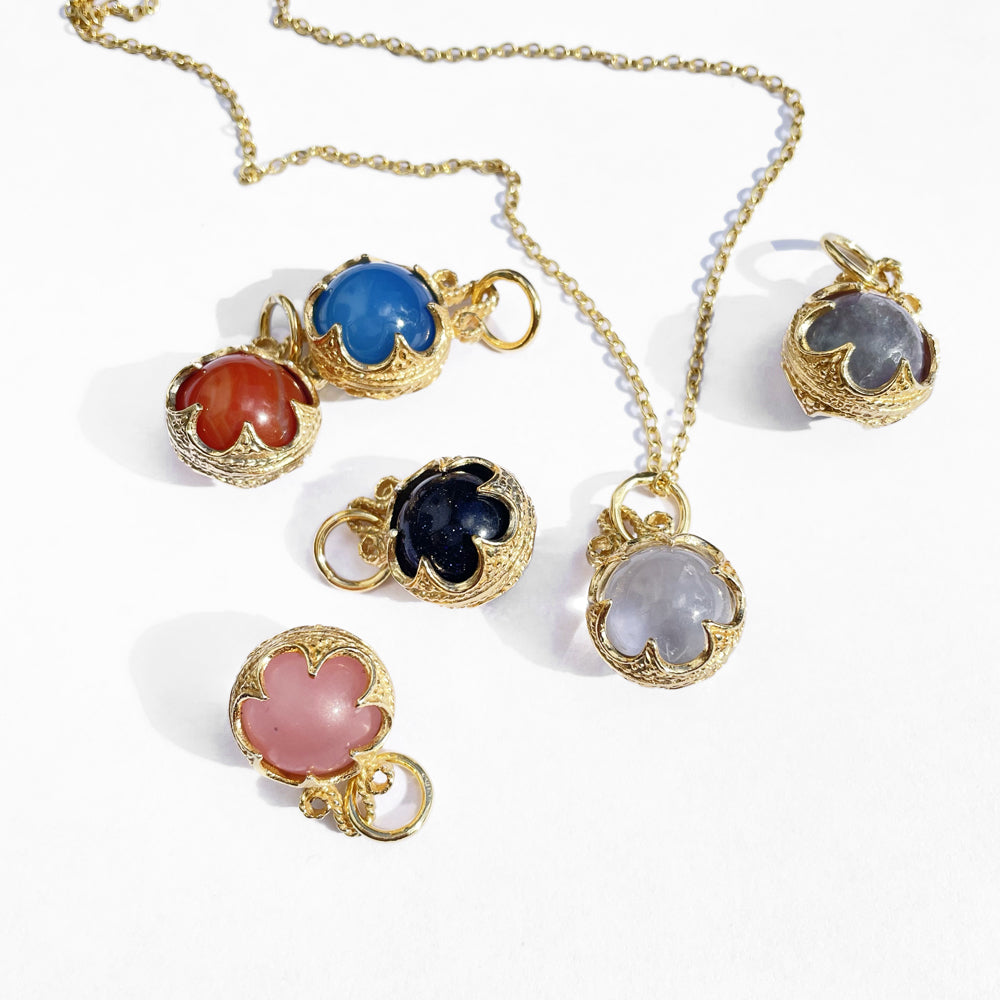 Dette vedhæng stammer fra en gotlandsk sølvskat fra vikingetiden, ca. 800 - 1.100 e. Kr. Udover at være båret som værdifulde smykker, har krystallerne sandsynligvis været brugt som forstørrelsesglas.