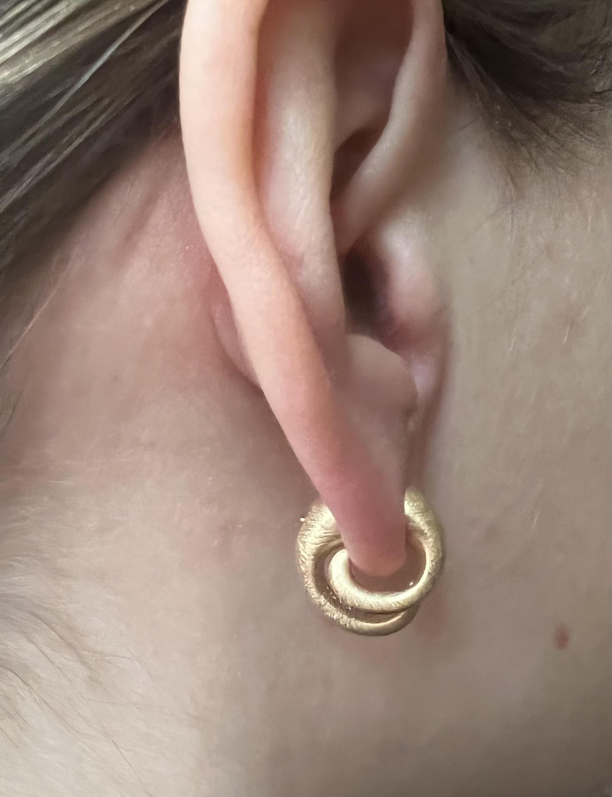 Det er sterlingsølv forgyldt og sidder smukt fast på øret.