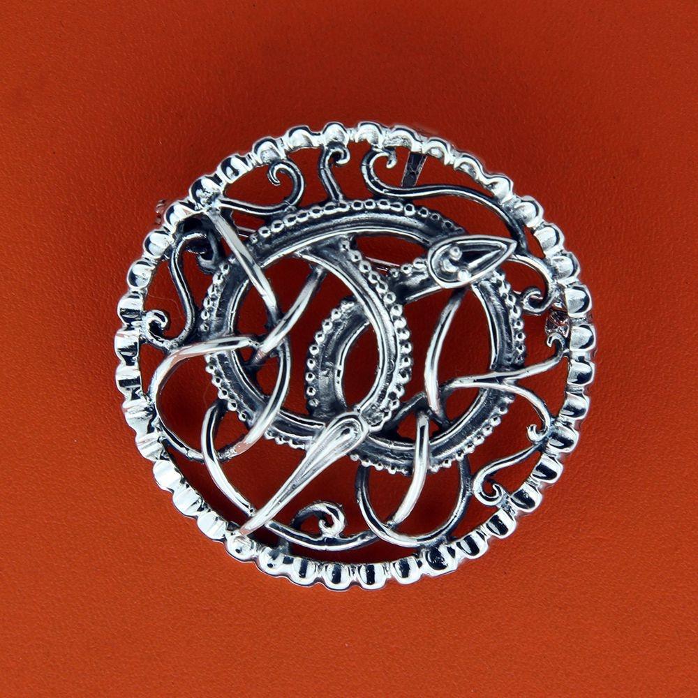 Brochen viser 2 kæmpende slanger i Urnesstil, som ligner meget de skandinaviske udgaver af dette motiv, som dog har udsmykninger på den ydre kant og slangekroppe i angelsaksisk stil.