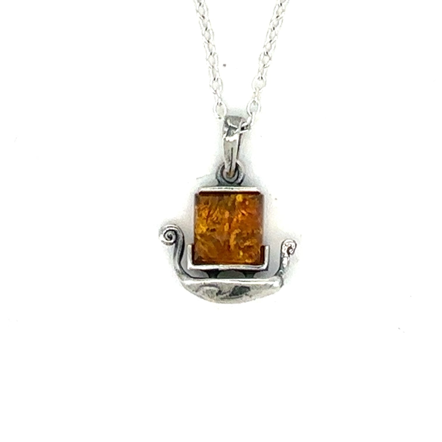 Dette unikke vedhæng er formet som et vikingeskib og fremstillet af ægte rav. Hvert stykke er et unika med sin egen naturlige glød og struktur – ikke to er ens.