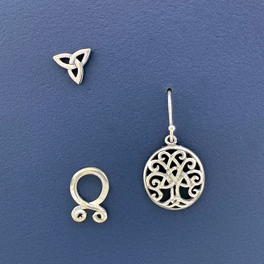 "Tre fortryllende ørestikker i sølv, hver med sin unikke historiske charme. Du har friheden til at sammensætte dem efter din egen smag.