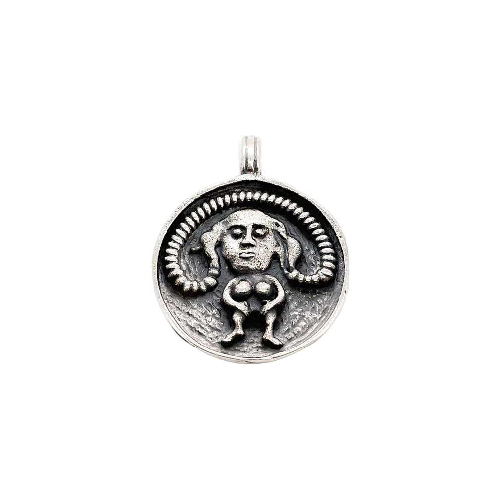 Vi ved dog, at Sheela Na Gigs tidligere har været fortolket som et syndigt fænomen. Hendes ekshibitionistiske fremtoning vækkede afsky og den kvindelige seksualitet var en skam. Den er nu til dags blevet reclaimet og Sheela Na Gigs bliver i dag brugt som et feministisk symbol, der ser Sheelas seksualitet som positiv og empowering. Man ser det blandt andet ved nye ler-sheelafigurer, som har glaserede vaginaer og kønslæber dekoreret med guld. Vi vil også gerne være med til at sætte Sheela Na Gigs i det rette lys og dette smykke kan måske hjælpe lidt på vej.