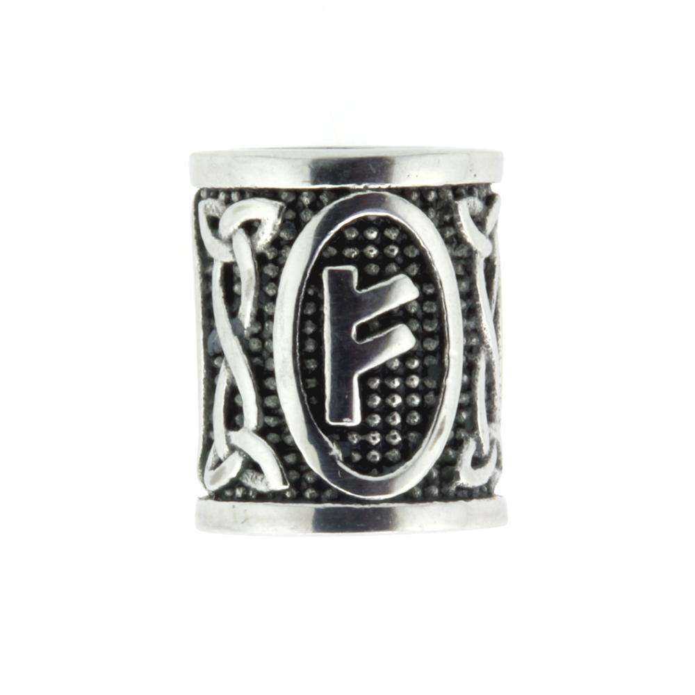 Skæg-/hårperle SØLV rune Fehu