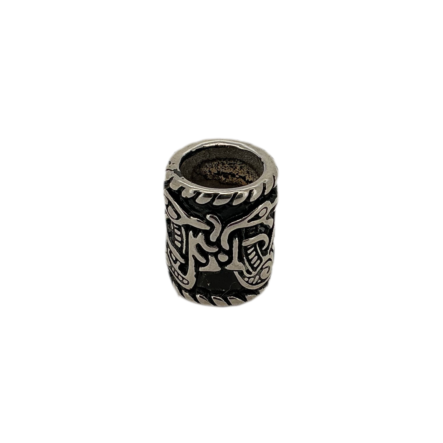 Hår og skægperle i STÅL med jellingemotiv.