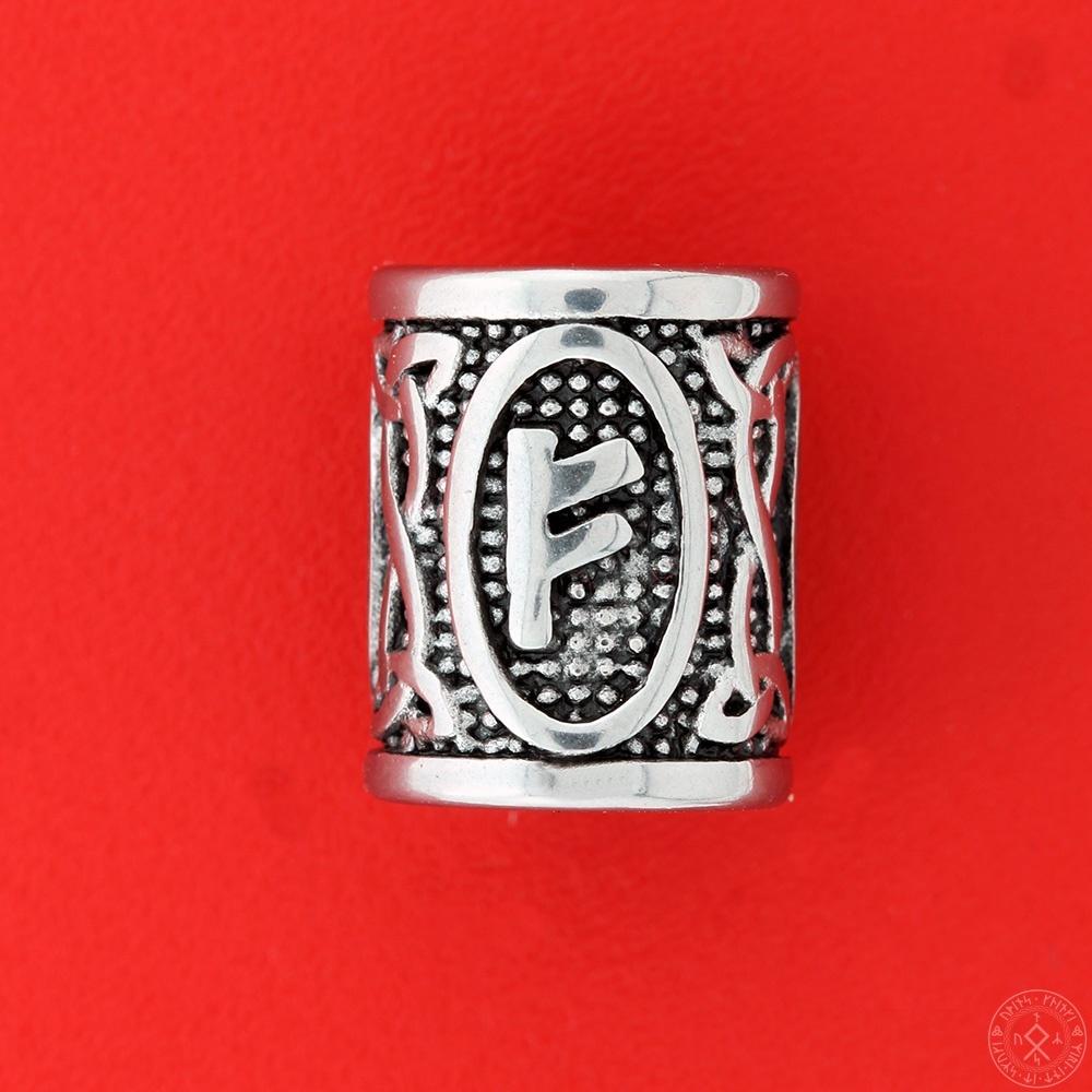 15 x 12 mm - Stål -Fehu / f, v / 1 - Fæ, kvæg, rigdom - Amulet for velstand og penge