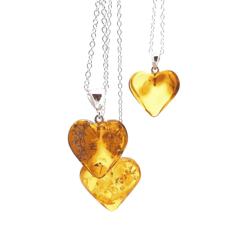 Størrelsen ligger fra ca. 1,8 cm. til 2,2 cm. og er i klar rav.