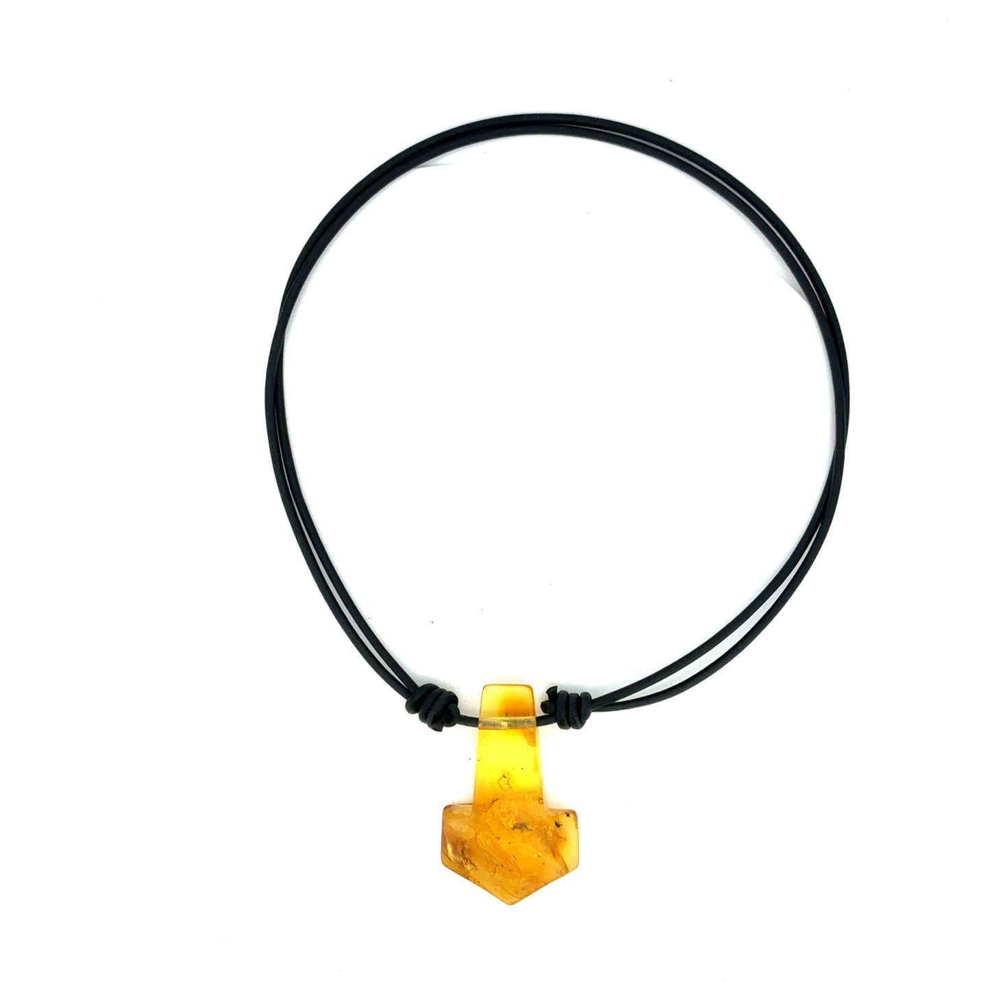 Dette store ravkors med læderkæde er en smuk gaveidé til enhver anledning. Ravets naturlige skønhed og historie binder natur og fortid sammen i ét unikt smykke.