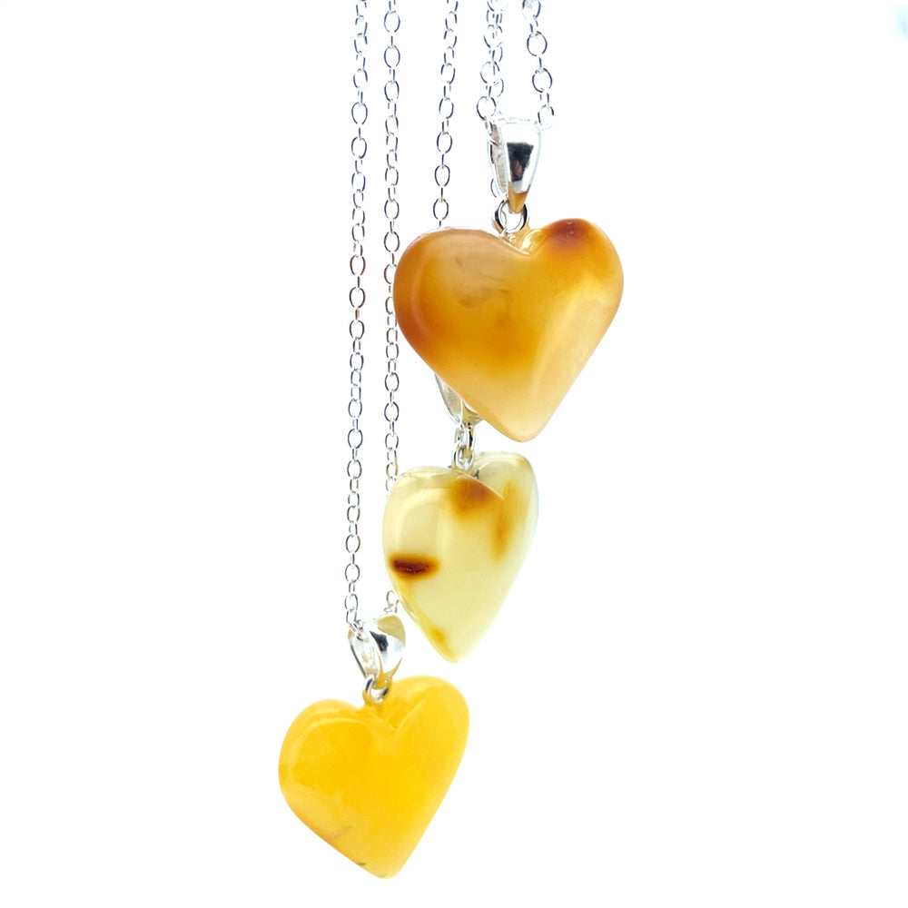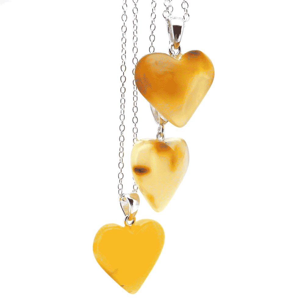Halskæde med stort ravhjerte - lys