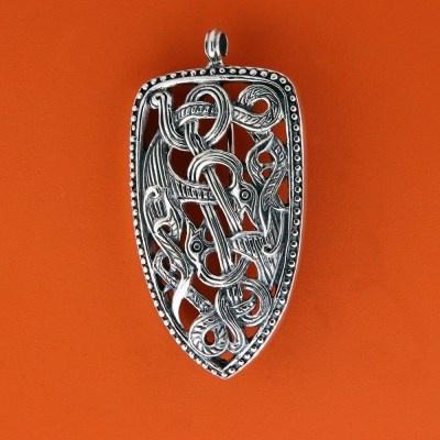 Dyremotiv, muligvis slanger, som iflg. mytologien har haft stor betydning for vikingerne, måske fordi de kunne formes som cirkel, firkant mm., vigtige, religiøse symboler. Som portvagt til underverden kunne den også bevogte jordiske værdier, og dens hamskifte gjorde den udødelig.