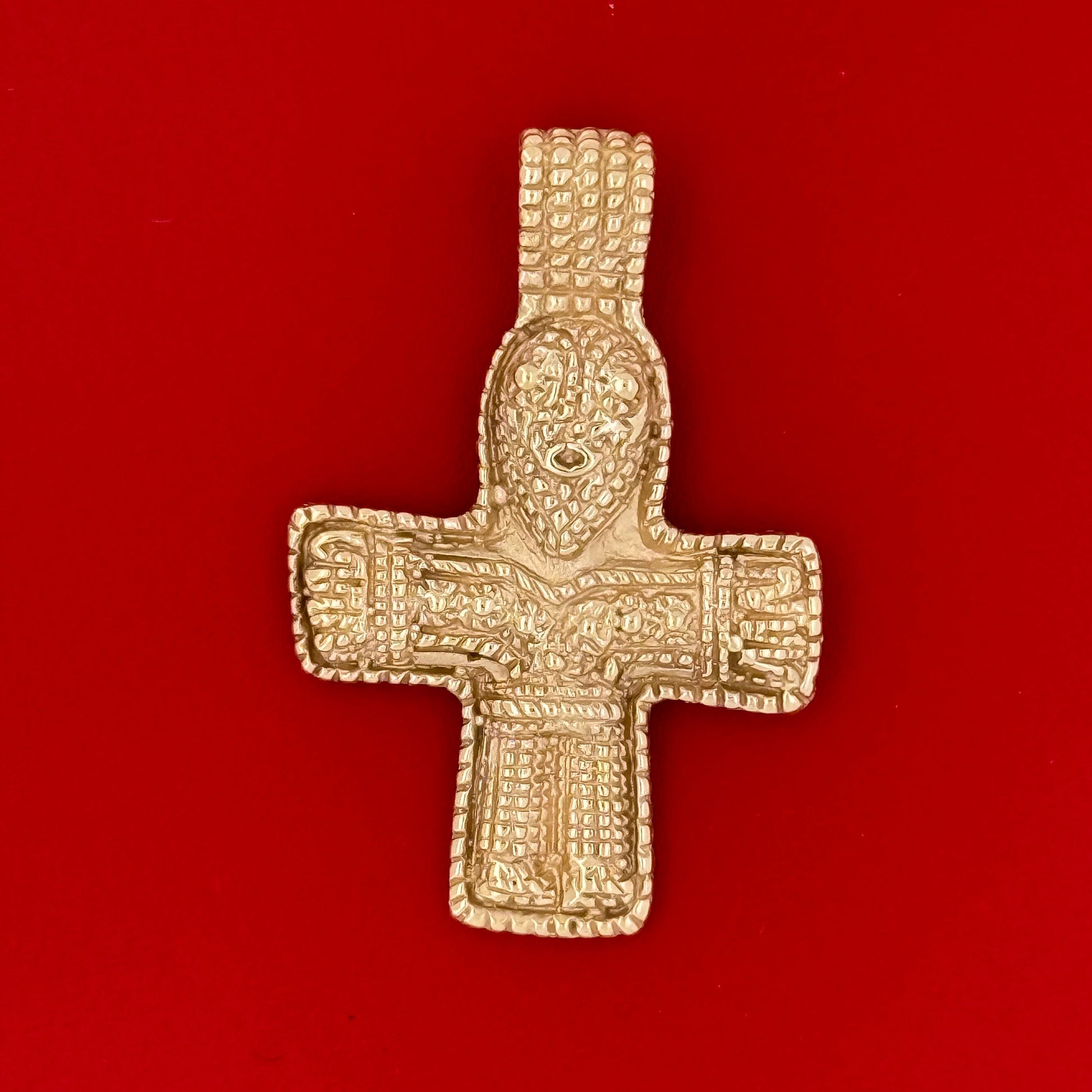 Korset bærer et billede af Kristus, der står med udstrakte arme, lige før korsfæstningen.