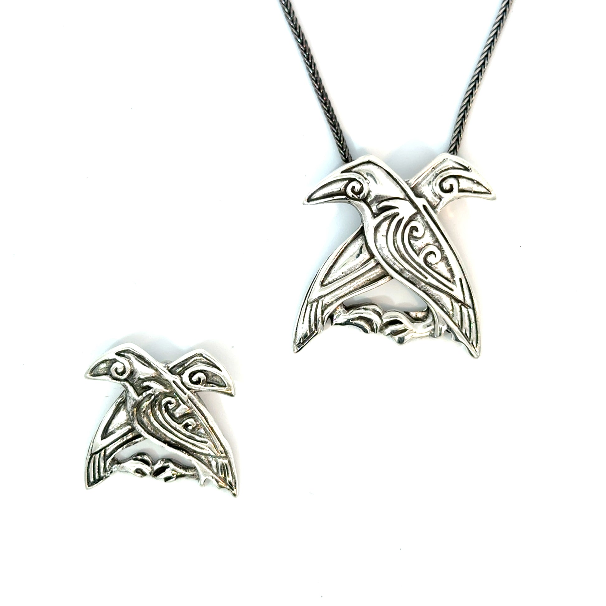 Hugin & Munin – Sølvvedhæng i To Størrelser