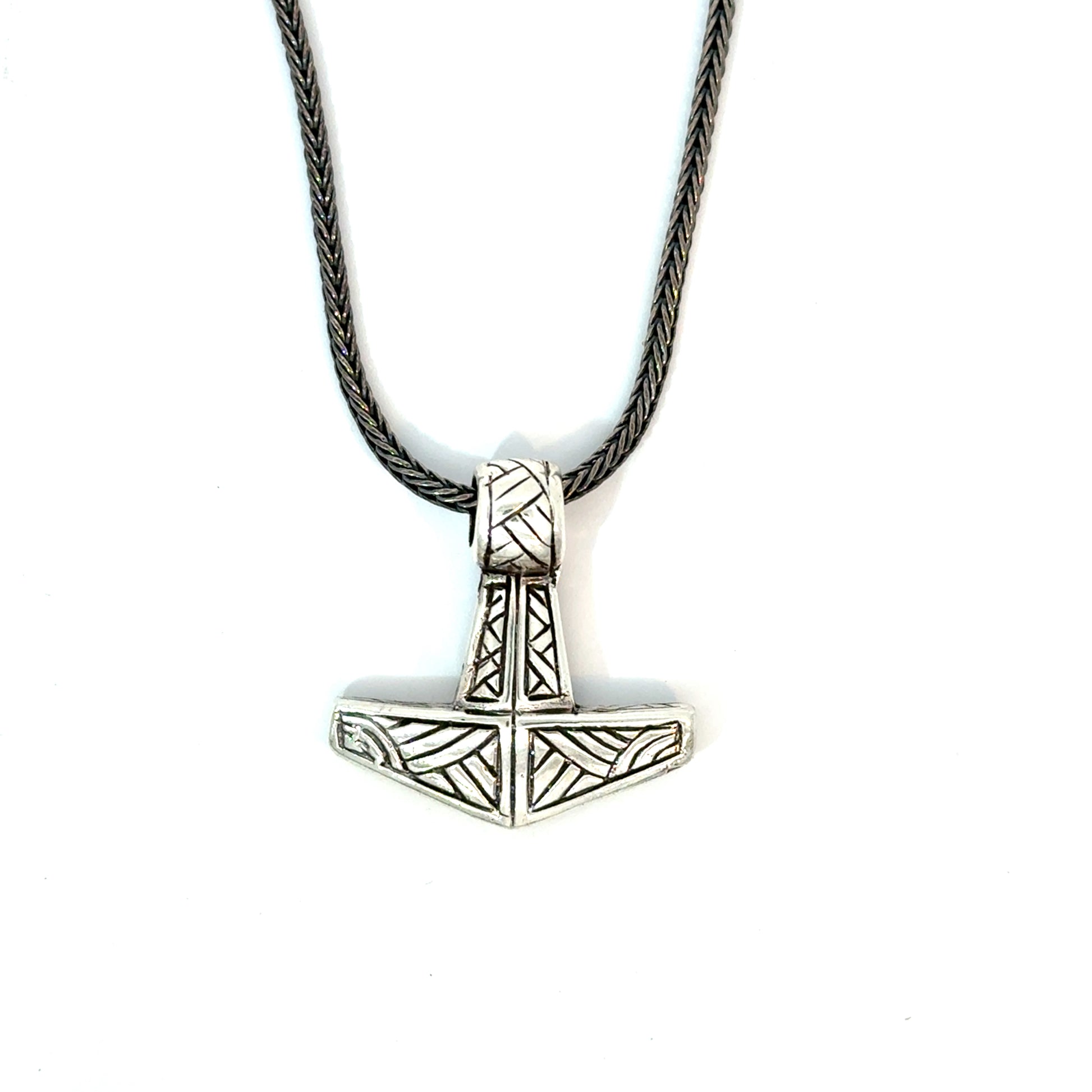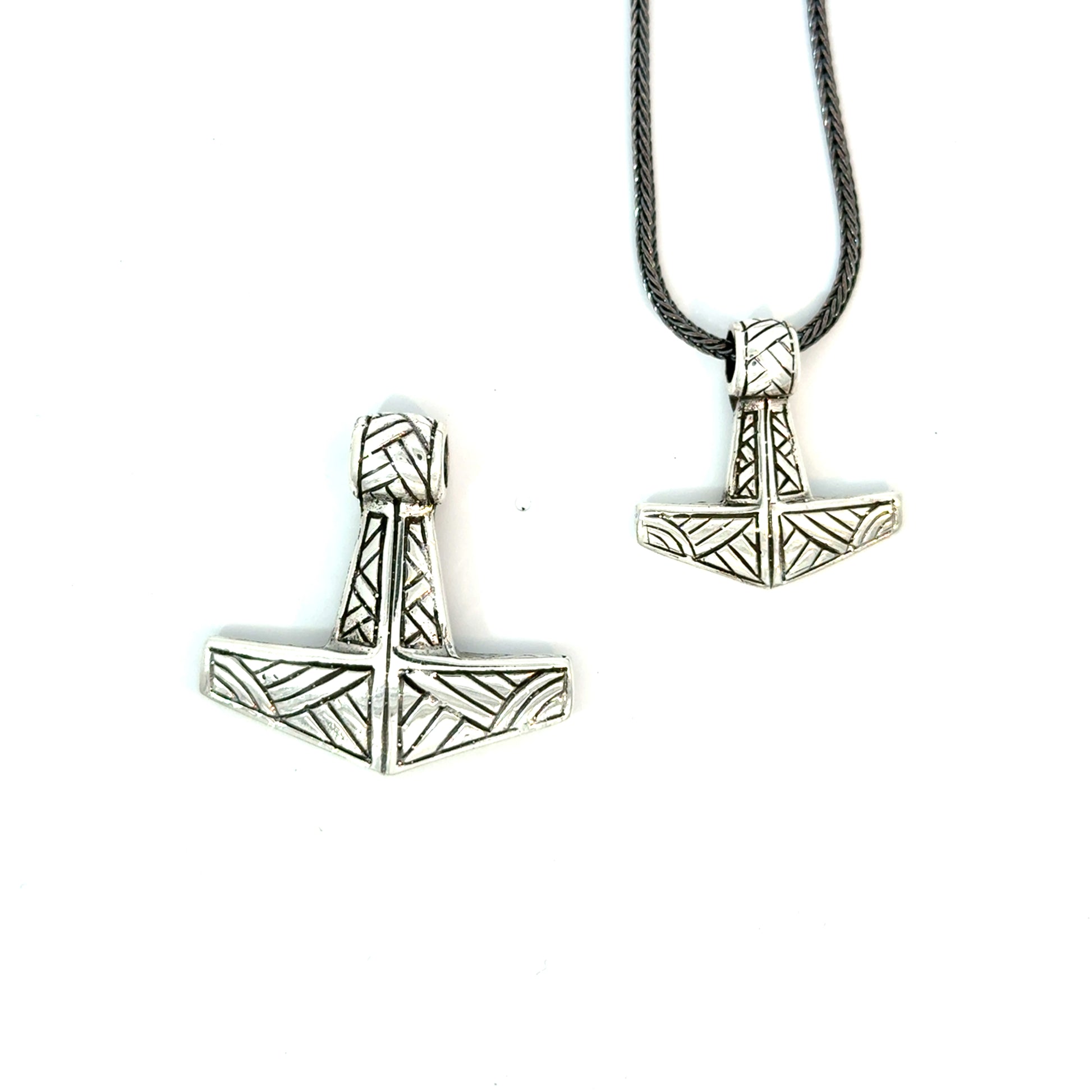 Thors Hammer – Sølvvedhæng i To Størrelser med Mønster