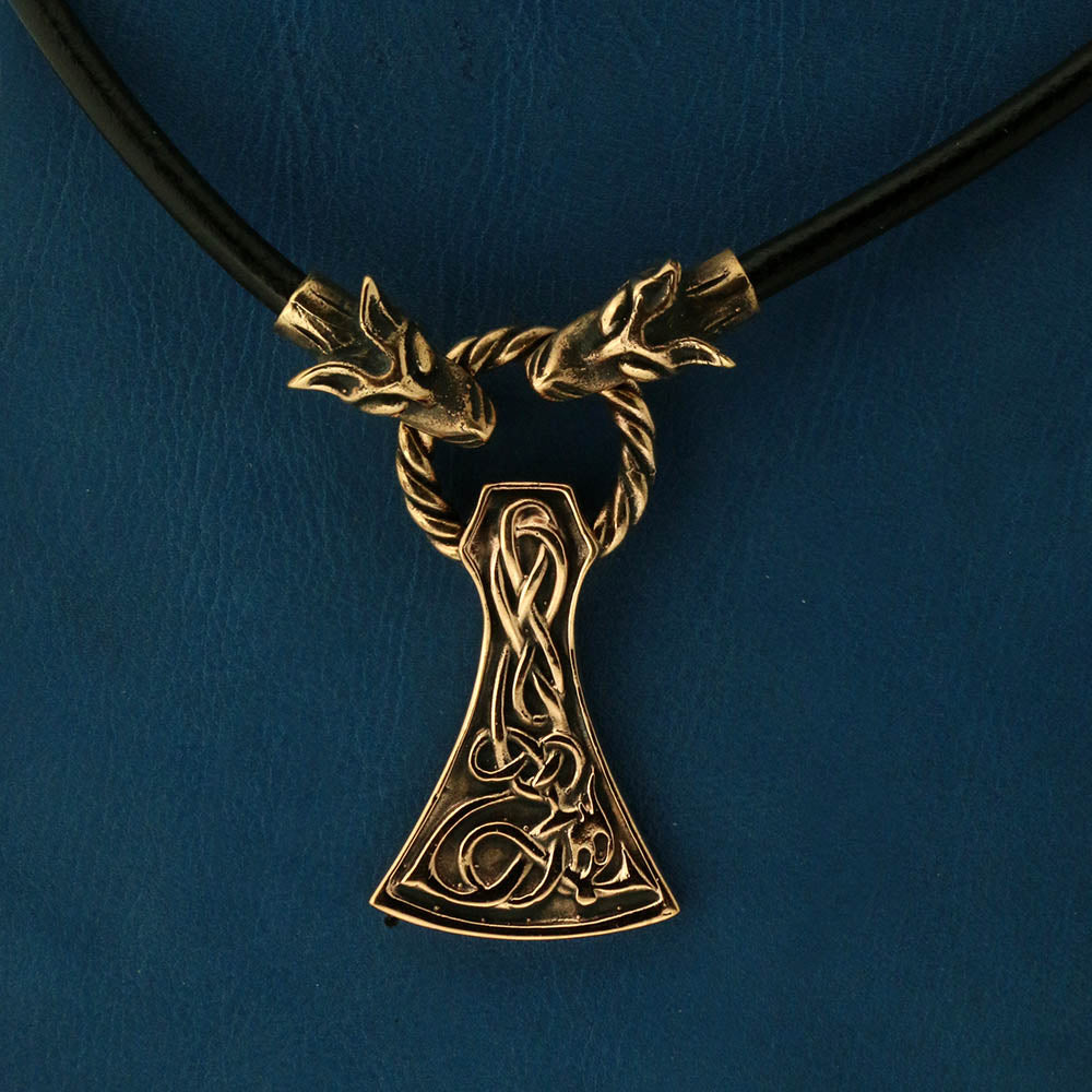 Stil og Symbolik: Det detaljerede design og dragemotivet gør denne økse til mere end bare et smykke. Den bliver en påmindelse om styrke og kraft, når du bærer den. Den diskrete læderkæde, der ledsager øksen, giver smykket et råt touch, der passer perfekt til vikingernes æra.