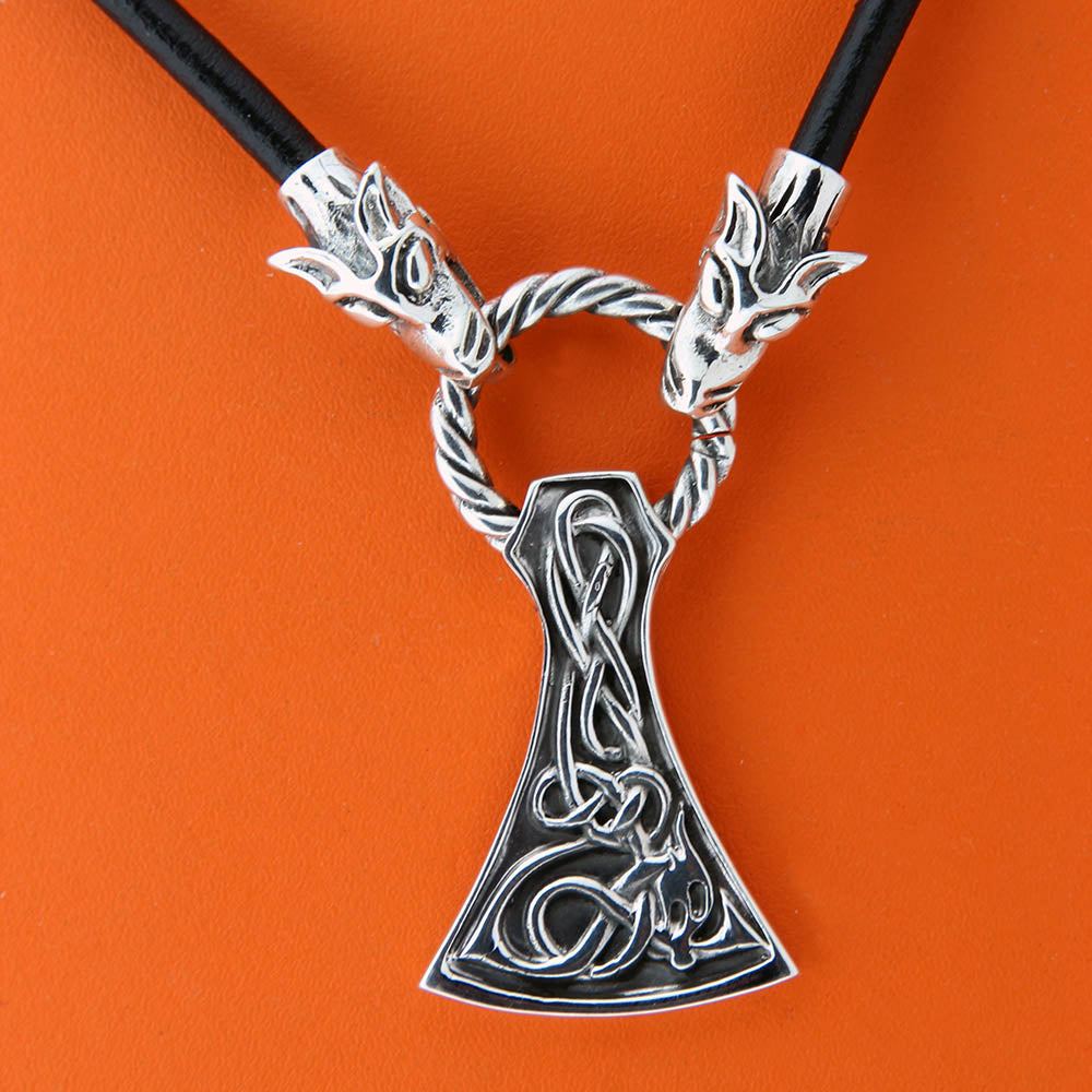 Stil og Symbolik: Det detaljerede design og dragemotivet gør denne økse til mere end bare et smykke. Den bliver en påmindelse om styrke og kraft, når du bærer den. Den diskrete læderkæde, der ledsager øksen, giver smykket et råt touch, der passer perfekt til vikingernes æra.