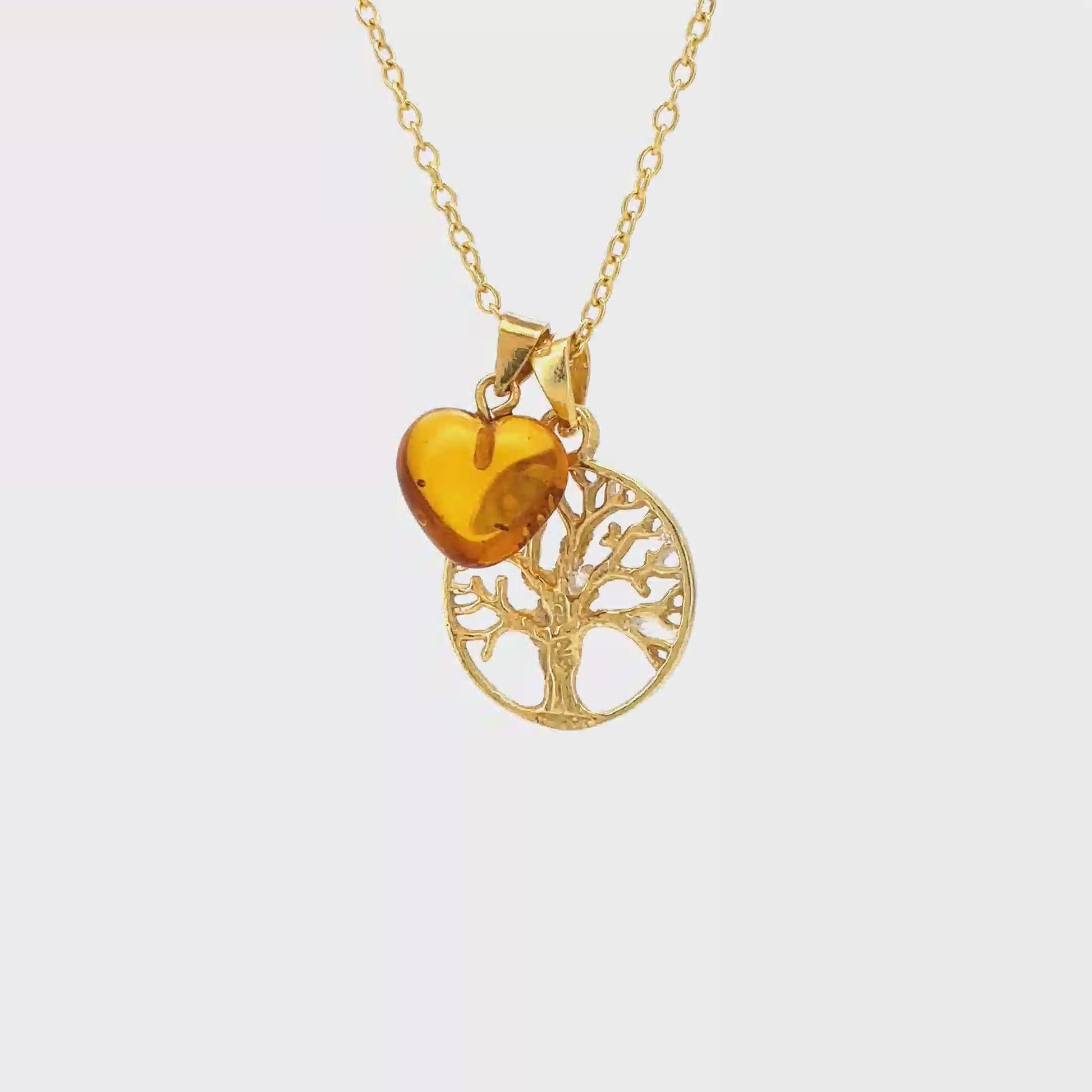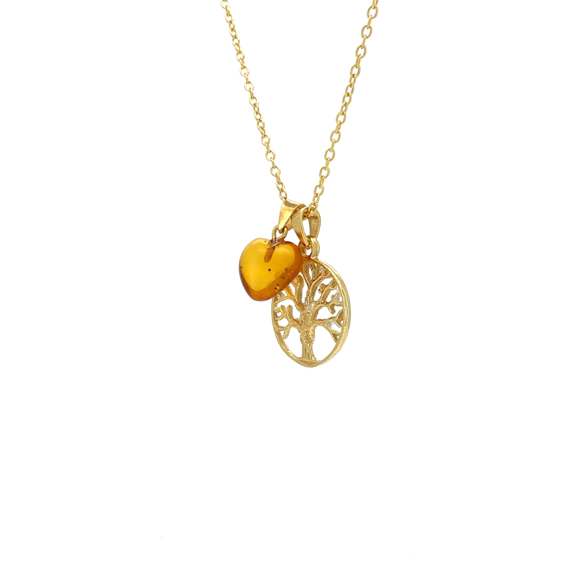 Livets Træ Yggdrasil – Vedhæng i forgyldt Sterling Sølv og rav inkl. 50 cm ankerkæde