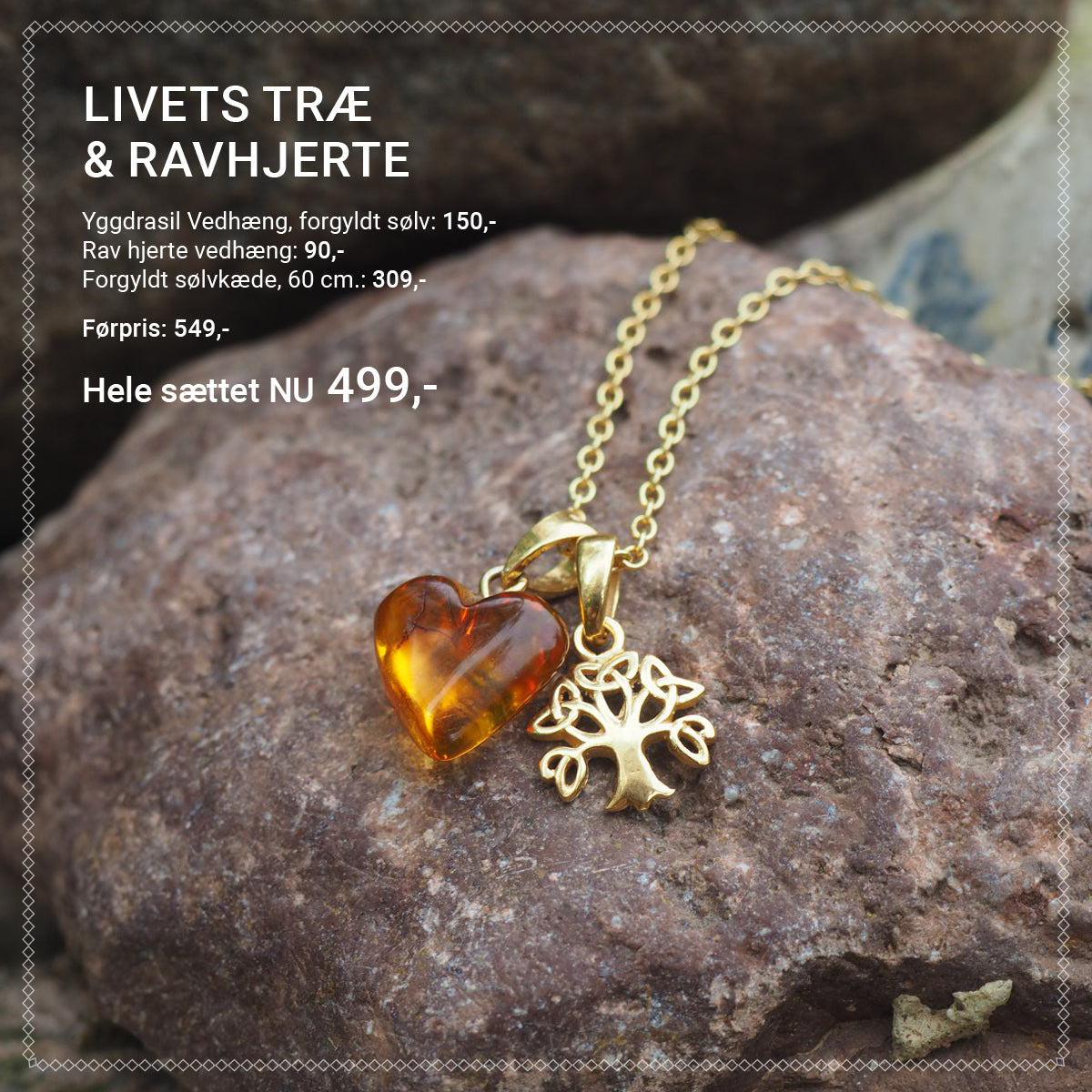 To kraftfulde amuletter mødes i en magisk halskæde: livets træ, som symboliserer evigt liv, og ravhjertet, som minder dig om kærligheden, der overvinder alt.